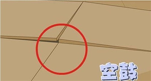 2、地面空鼓:如果地面有空鼓現象,我們在后期裝修時直接鋪上地磚鋪地磚的地方,由于地面是空的,地下要經常踩踏,時間長了,所以在日后生活中地磚就會因為受力不均而破裂或下。