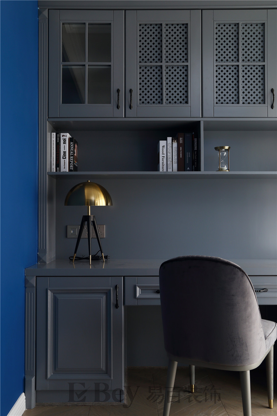 藍色在空間中大面積應用,與白色木質相結合,使整個空間張揚有度。