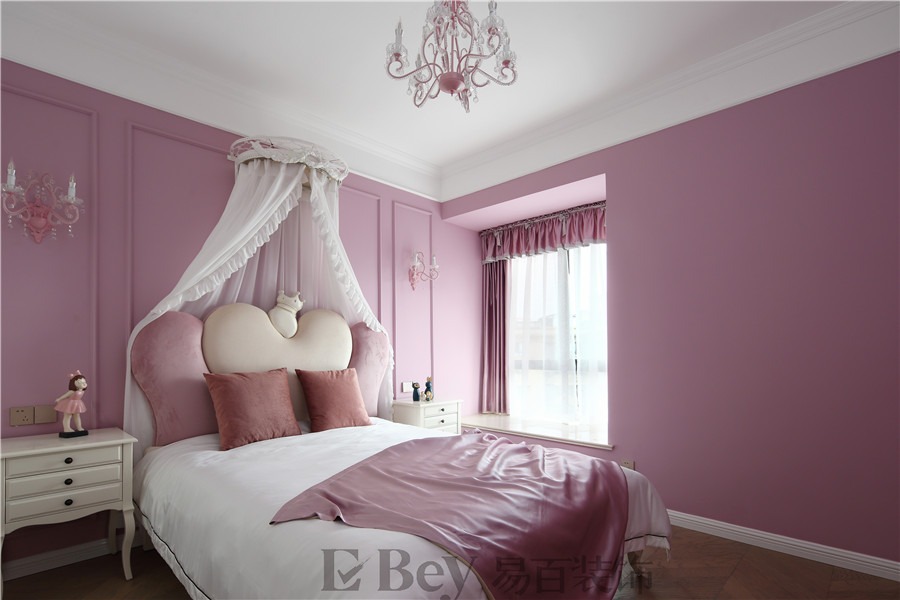 每個女孩都有一個公主夢,以紫粉色為主色調的公主房,搭配卡通造型的玩偶,營造出一個童話般的世界。